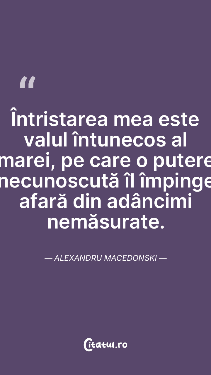 Întristarea mea este valul întunecos al marei, pe care o putere necunoscută îl împinge afară din adâncimi nemăsurate. Alexandru Macedonski