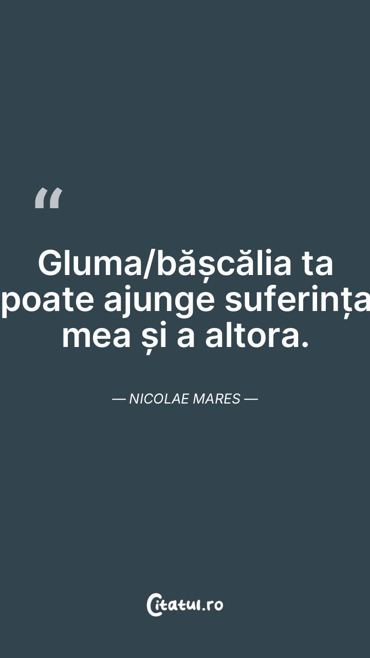 Gluma/bășcălia ta poate ajunge suferința mea și a altora. Nicolae Mares