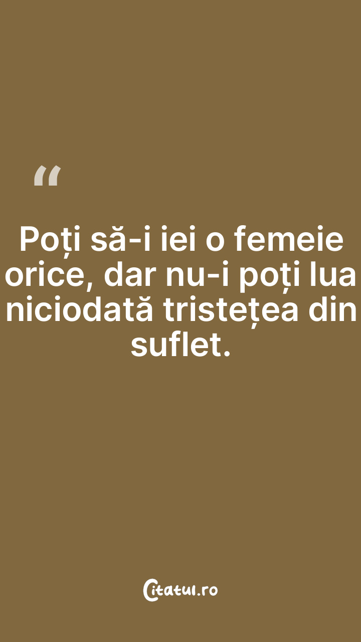 Poți să-i iei o femeie orice, dar nu-i poți lua niciodată tristețea din suflet.