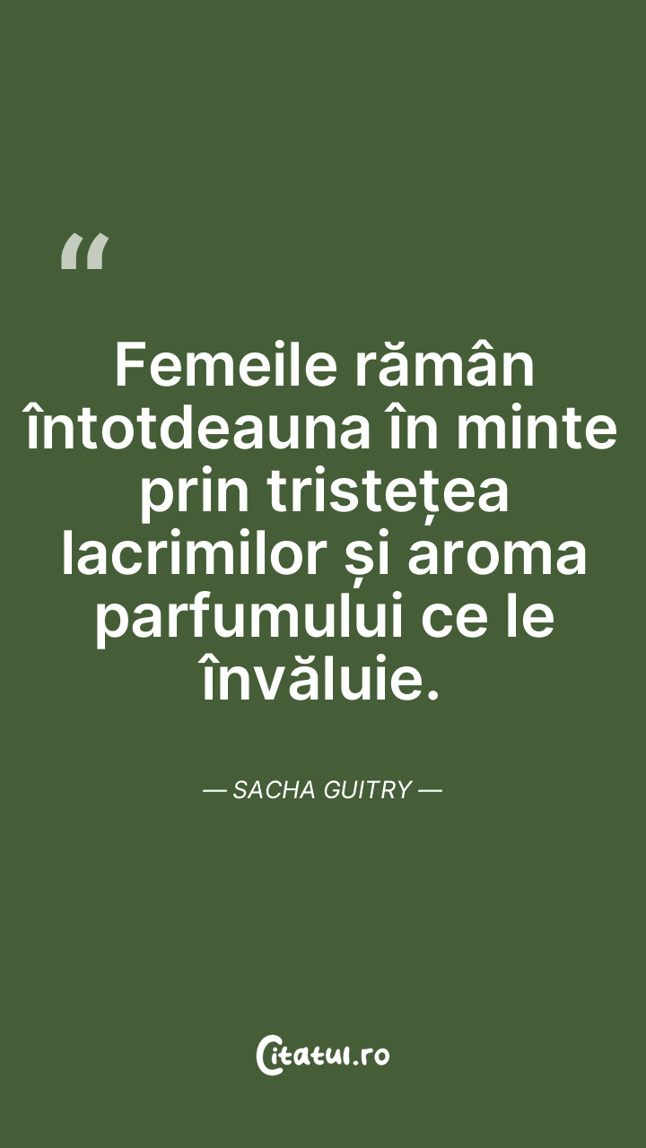 Femeile rămân întotdeauna în minte prin tristețea lacrimilor și aroma parfumului ce le învăluie. Sacha Guitry