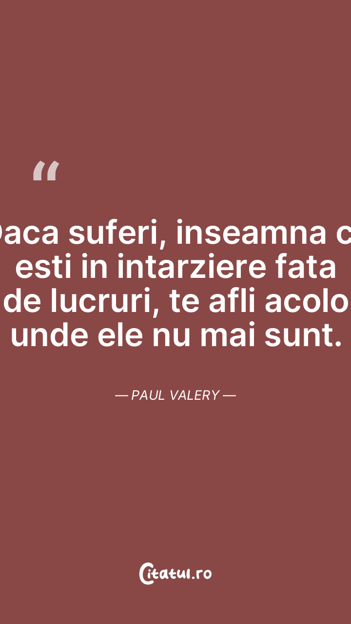Daca suferi, inseamna ca esti in intarziere fata de lucruri, te afli acolo unde ele nu mai sunt. Paul Valery