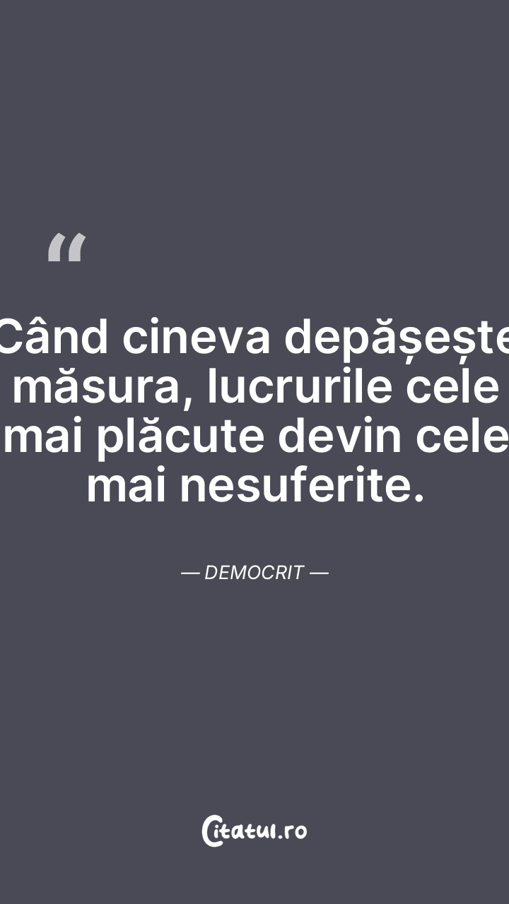 Când cineva depășește măsura, lucrurile cele mai plăcute devin cele mai nesuferite. Democrit