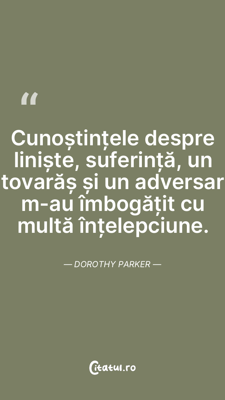 Cunoștințele despre liniște, suferință, un tovarăș și un adversar m-au îmbogățit cu multă înțelepciune. Dorothy Parker