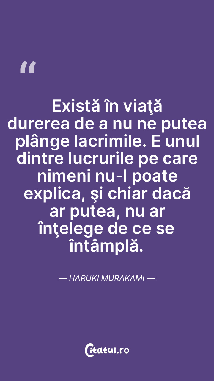 Există în viaţă durerea de a nu ne putea plânge lacrimile. E unul dintre lucrurile pe care nimeni nu-l poate explica, şi chiar dacă ar putea, nu ar înţelege de ce se întâmplă. Haruki Murakami
