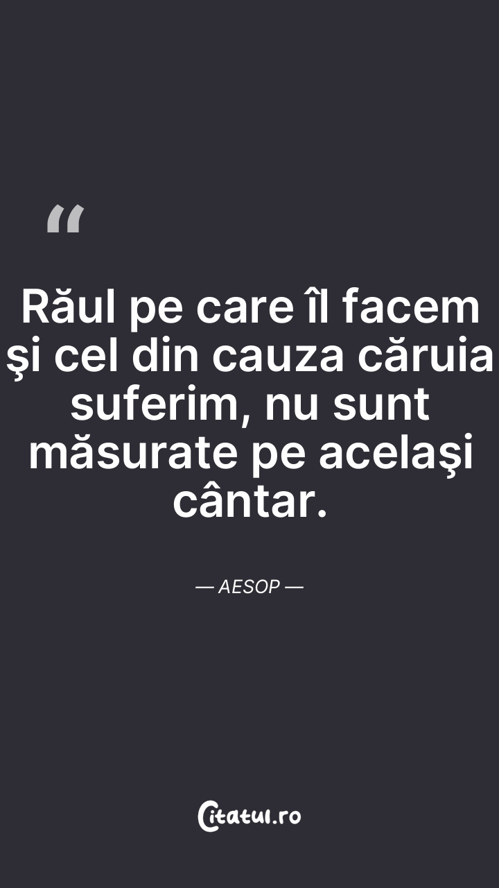 Răul pe care îl facem şi cel din cauza căruia suferim, nu sunt măsurate pe acelaşi cântar. Aesop