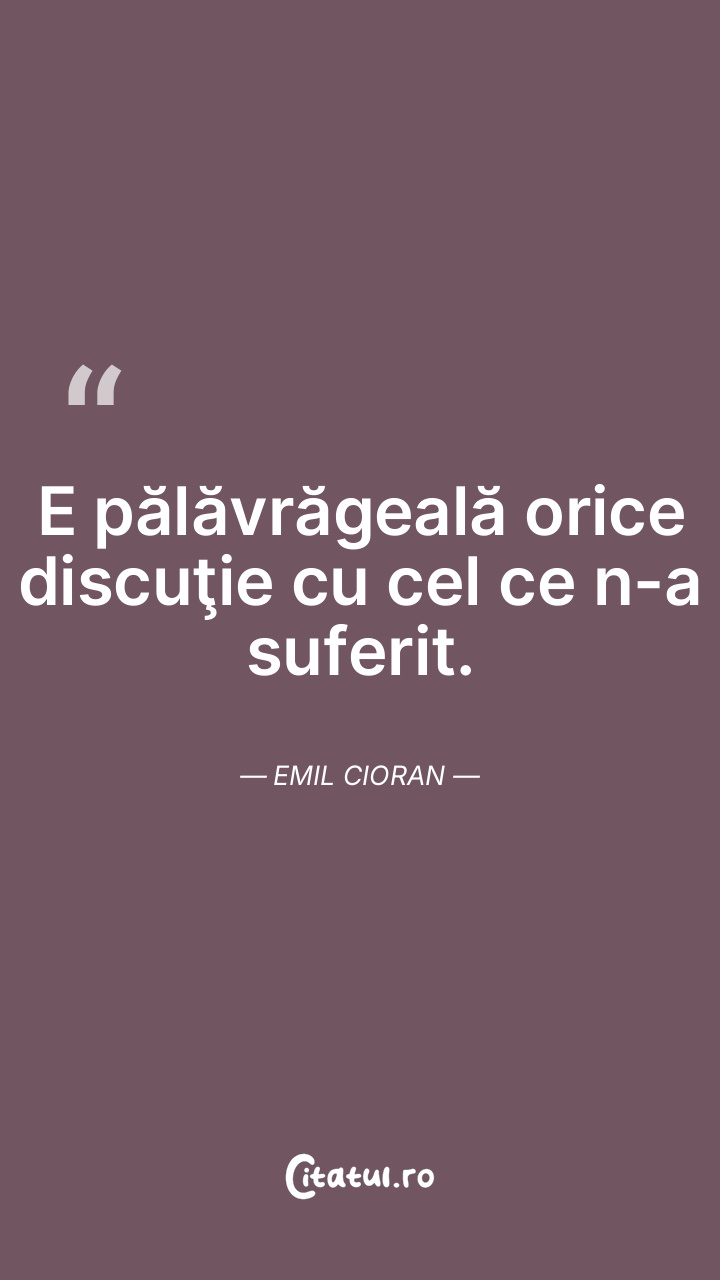 E pălăvrăgeală orice discuţie cu cel ce n-a suferit. Emil Cioran