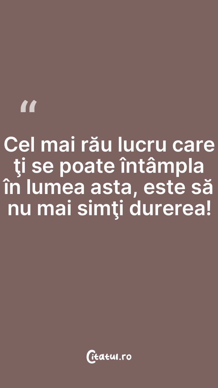 Cel mai rău lucru care ţi se poate întâmpla în lumea asta, este să nu mai simţi durerea!
