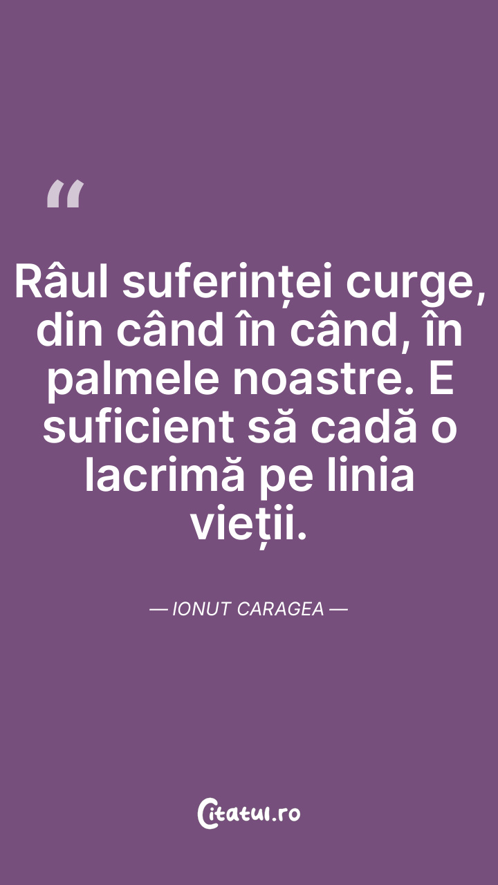 Râul suferinței curge, din când în când, în palmele noastre. E suficient să cadă o lacrimă pe linia vieții. Ionut Caragea