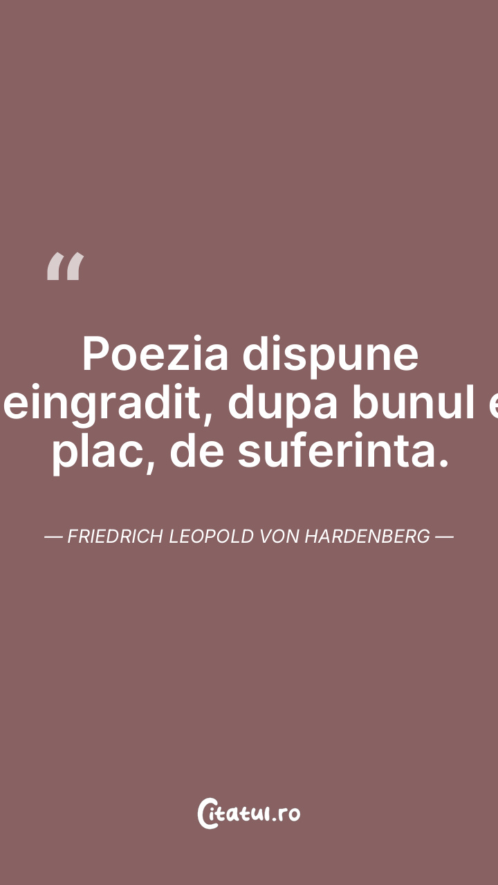 Poezia dispune neingradit, dupa bunul ei plac, de suferinta. Friedrich Leopold Von Hardenberg