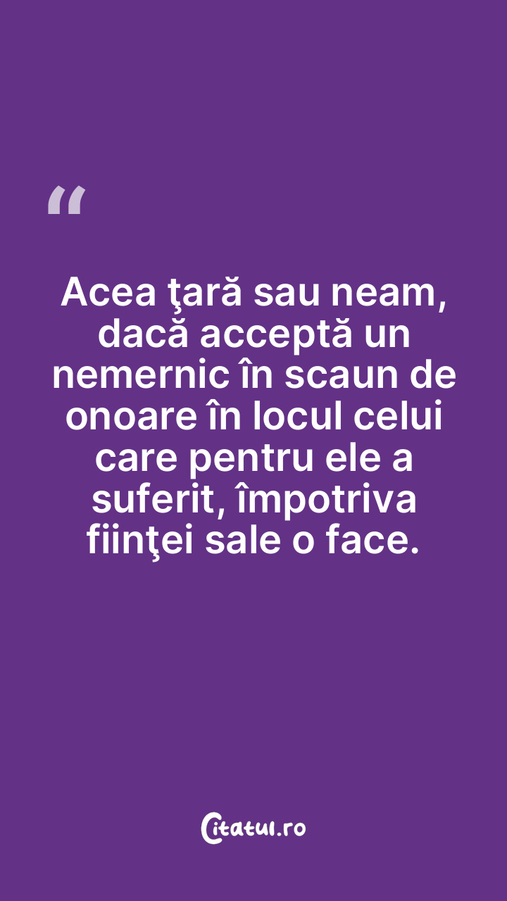 Acea ţară sau neam, dacă acceptă un nemernic în scaun de onoare în locul celui care pentru ele a suferit, împotriva fiinţei sale o face.