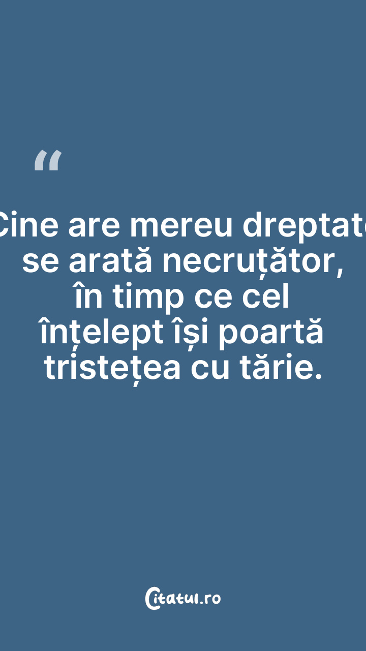 Cine are mereu dreptate se arată necruțător, în timp ce cel înțelept își poartă tristețea cu tărie.