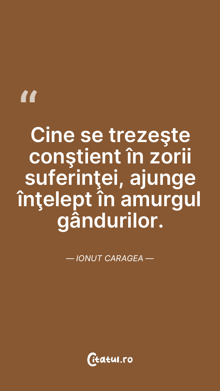 Cine se trezeşte conştient în zorii suferinţei, ajunge înţelept în amurgul gândurilor. Ionut Caragea