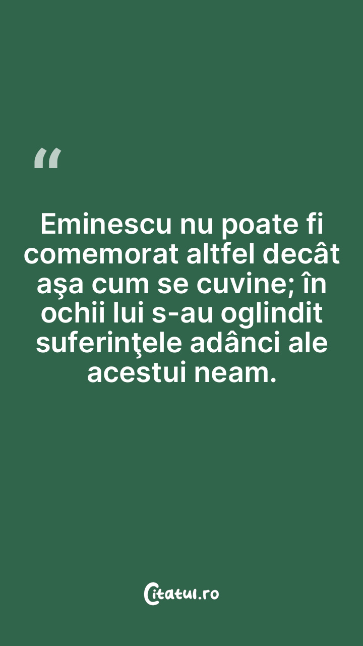 Eminescu nu poate fi comemorat altfel decât aşa cum se cuvine; în ochii lui s-au oglindit suferinţele adânci ale acestui neam.