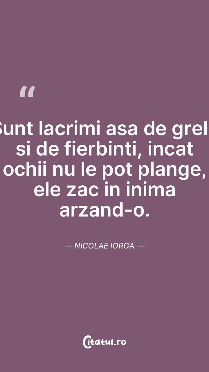 Sunt lacrimi asa de grele si de fierbinti, incat ochii nu le pot plange, ele zac in inima arzand-o. Nicolae Iorga