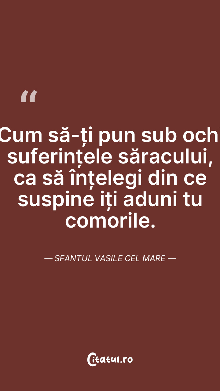 Cum să-ți pun sub ochi suferințele săracului, ca să înțelegi din ce suspine iți aduni tu comorile. Sfantul Vasile cel Mare