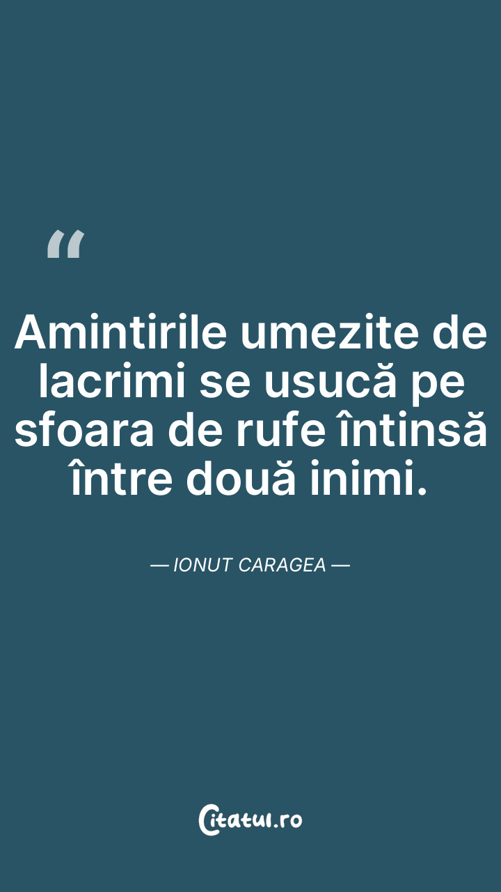 Amintirile umezite de lacrimi se usucă pe sfoara de rufe întinsă între două inimi. Ionut Caragea
