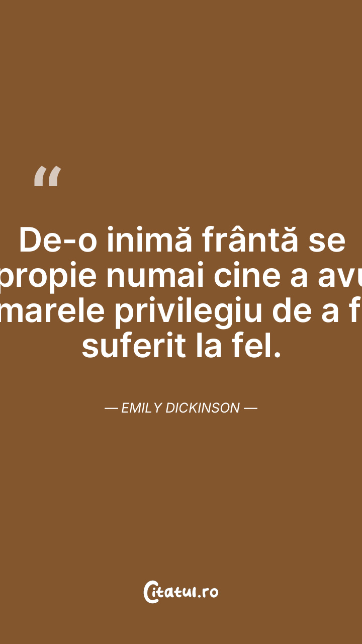 De-o inimă frântă se apropie numai cine a avut marele privilegiu de a fi suferit la fel. Emily Dickinson