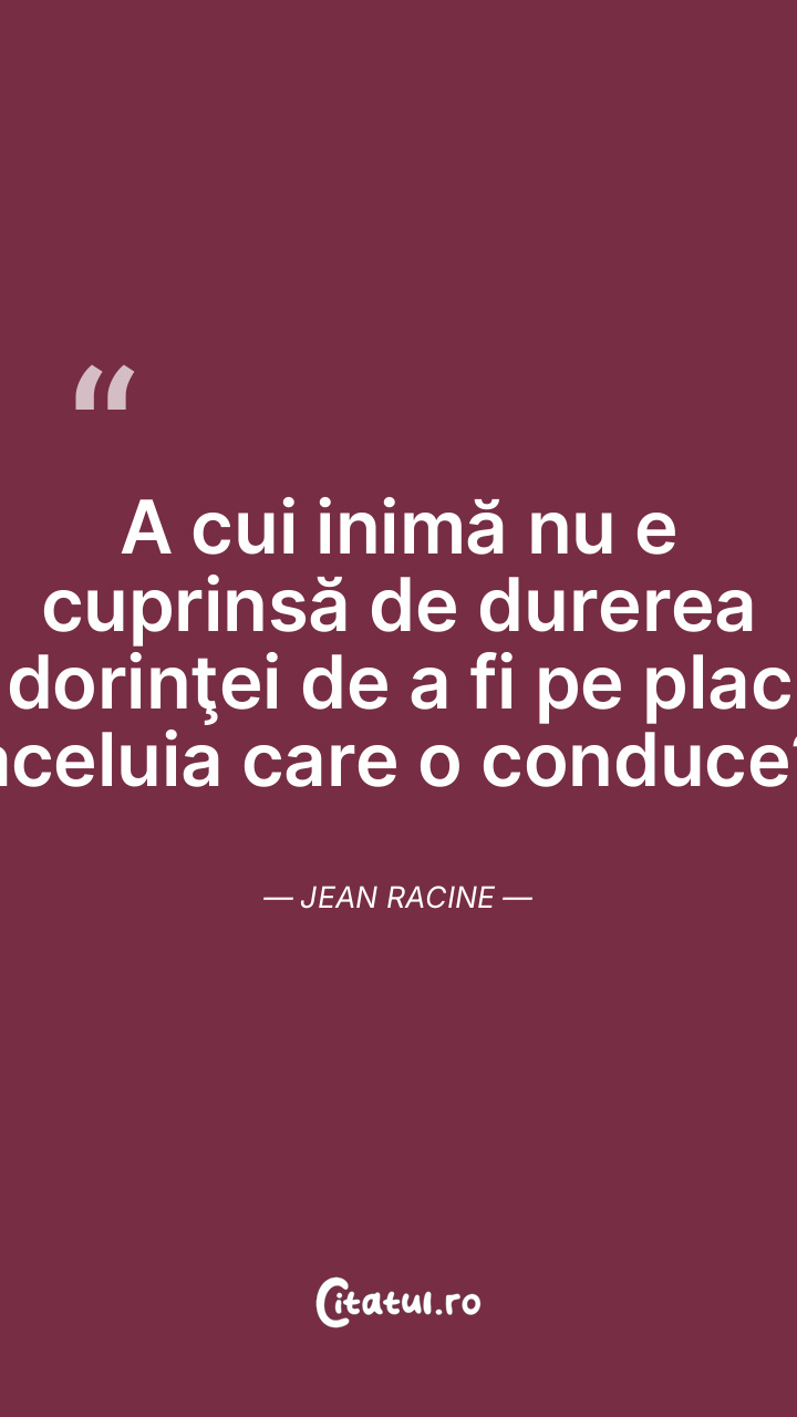 A cui inimă nu e cuprinsă de durerea dorinţei de a fi pe plac aceluia care o conduce? Jean Racine
