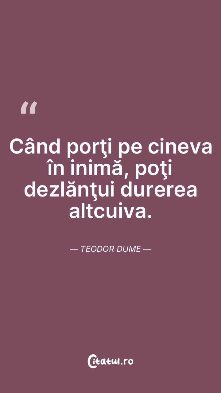 Când porţi pe cineva în inimă, poţi dezlănţui durerea altcuiva. Teodor Dume