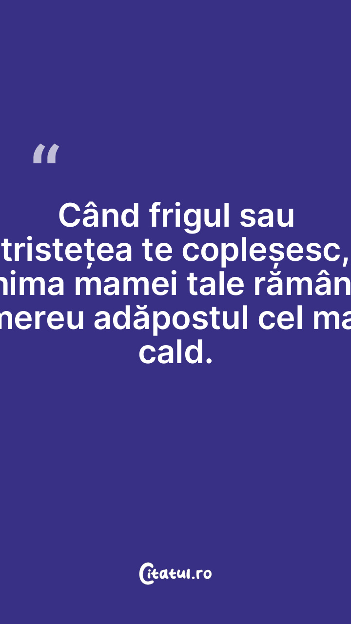 Când frigul sau tristețea te copleșesc, inima mame...
