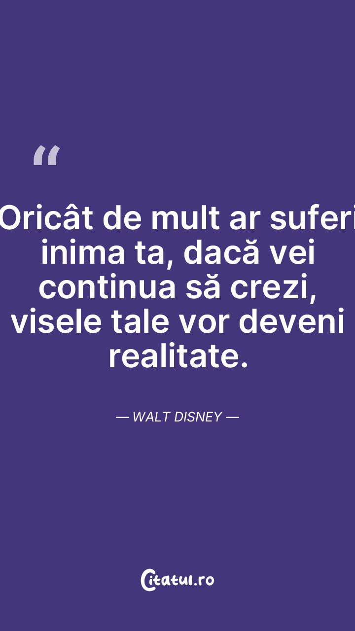 Oricât de mult ar suferi inima ta, dacă vei continua să crezi, visele tale vor deveni realitate. Walt Disney