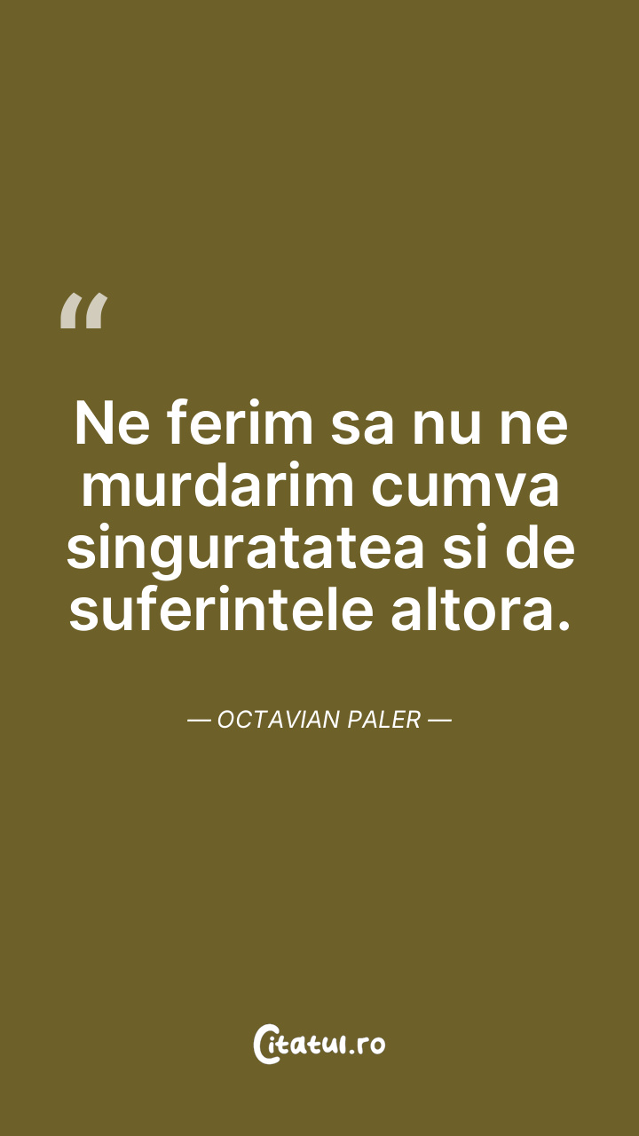 Ne ferim sa nu ne murdarim cumva singuratatea si de suferintele altora. Octavian Paler