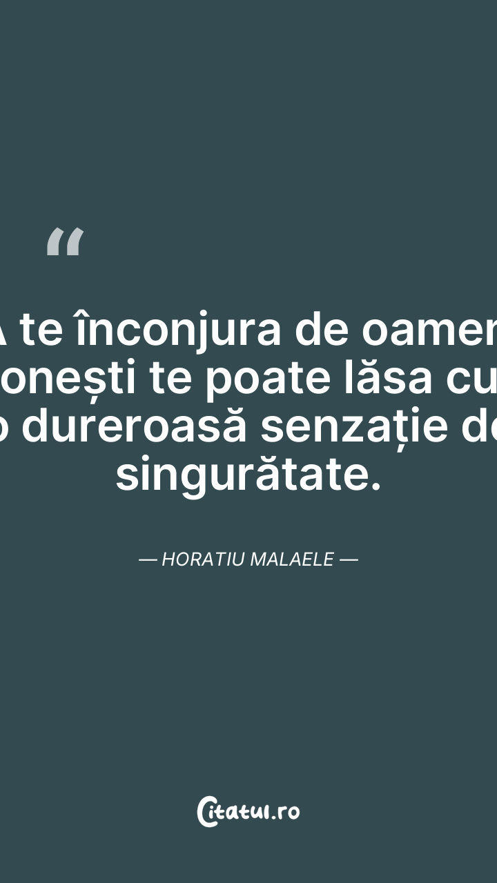 A te înconjura de oameni onești te poate lăsa cu o dureroasă senzație de singurătate. Horatiu Malaele