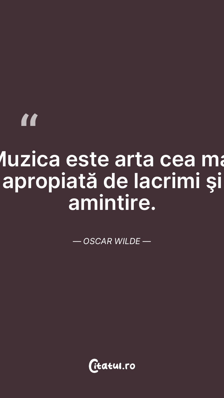 Muzica este arta cea mai apropiată de lacrimi şi amintire. Oscar Wilde