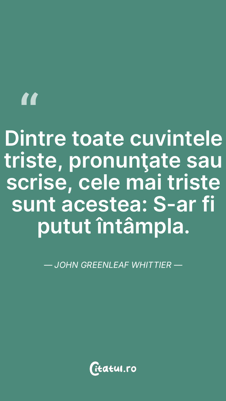Dintre toate cuvintele triste, pronunţate sau scrise, cele mai triste sunt acestea: S-ar fi putut întâmpla. John Greenleaf Whittier