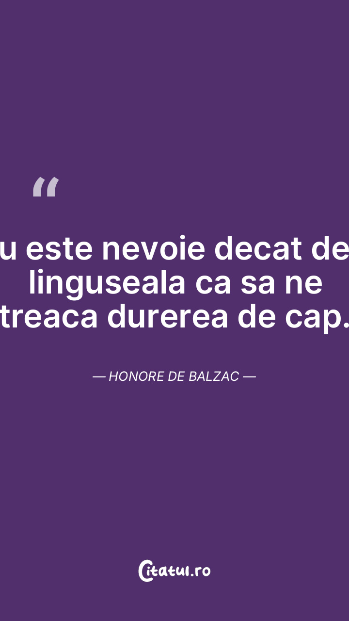 Nu este nevoie decat de o linguseala ca sa ne treaca durerea de cap. Honore de Balzac
