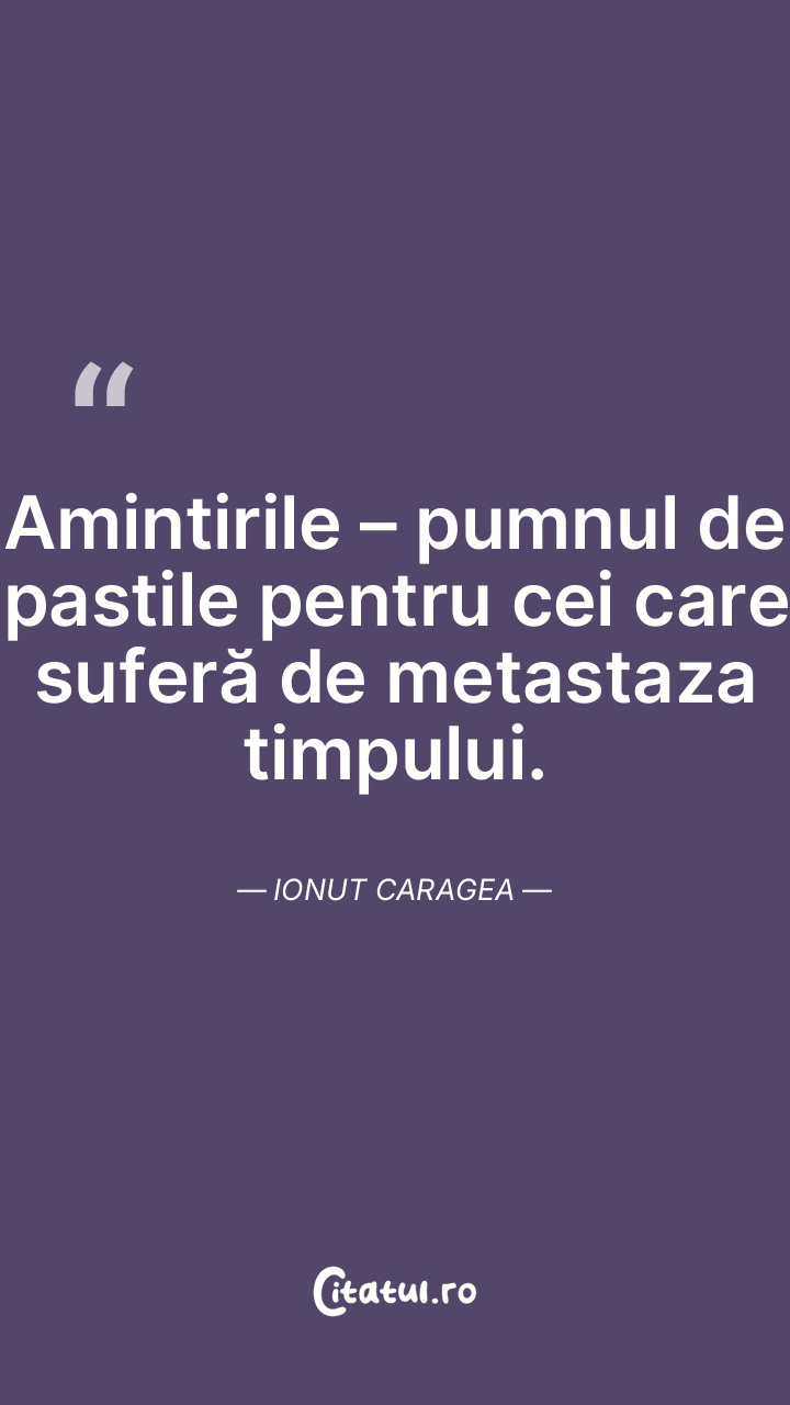 Amintirile – pumnul de pastile pentru cei care suferă de metastaza timpului. Ionut Caragea