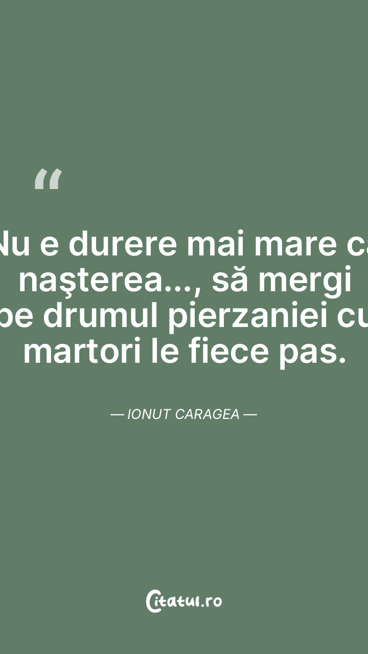 Nu e durere mai mare ca naşterea..., să mergi pe drumul pierzaniei cu martori le fiece pas. Ionut Caragea