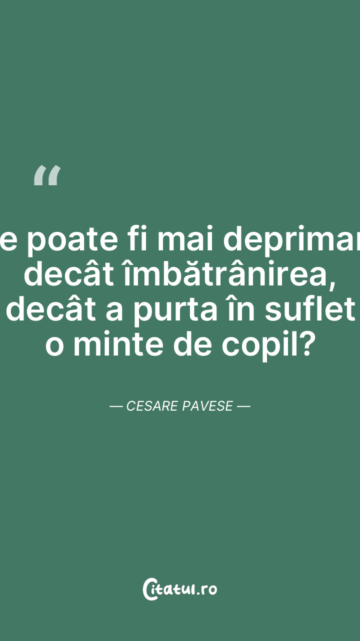 Ce poate fi mai deprimant decât îmbătrânirea, decât a purta în suflet o minte de copil? Cesare Pavese