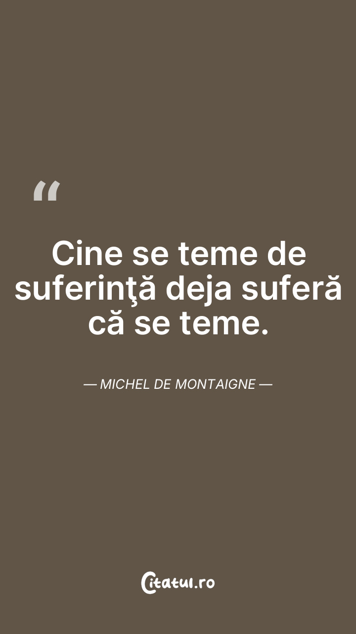 Cine se teme de suferinţă deja suferă că se teme. Michel de Montaigne