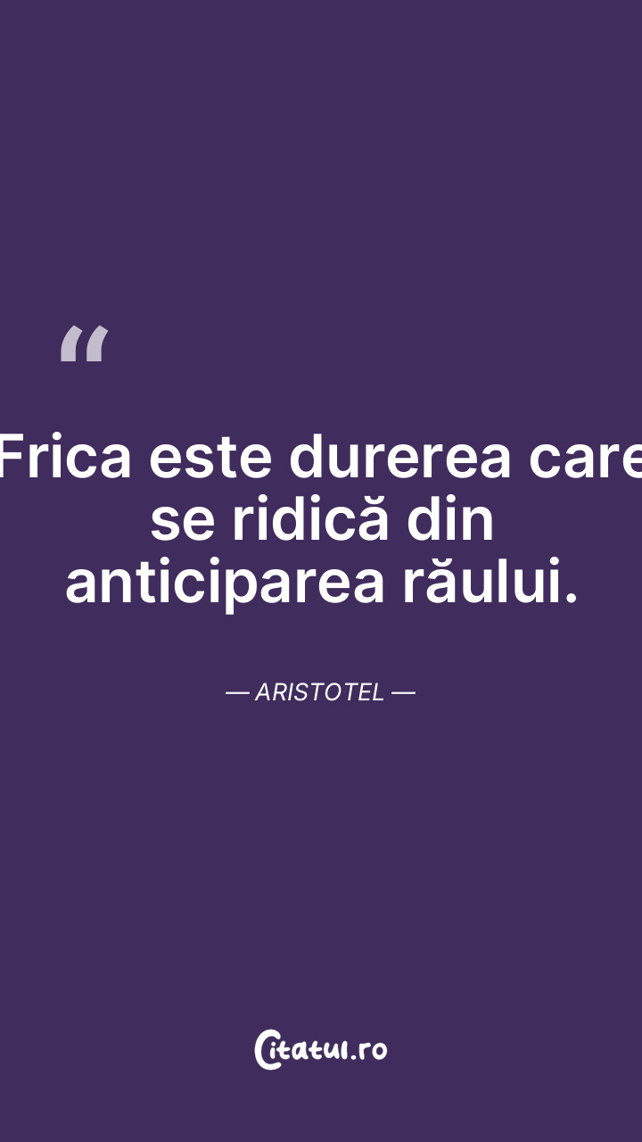Frica este durerea care se ridică din anticiparea răului. Aristotel