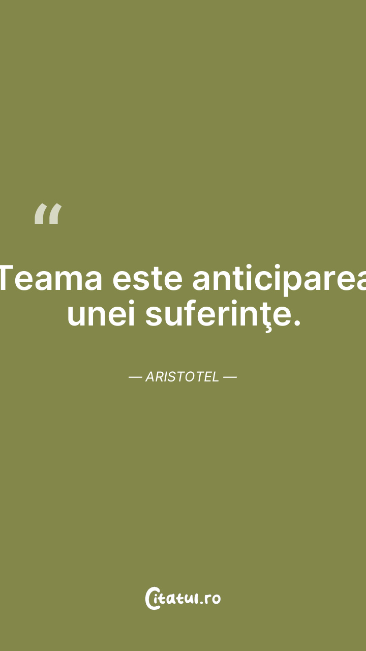 Teama este anticiparea unei suferinţe. Aristotel