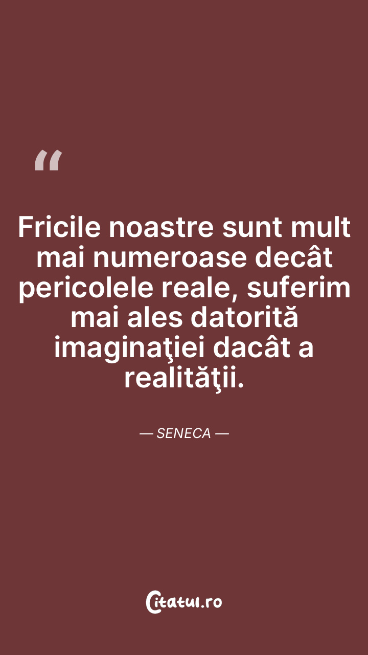 Fricile noastre sunt mult mai numeroase decât pericolele reale, suferim mai ales datorită imaginaţiei dacât a realităţii. Seneca