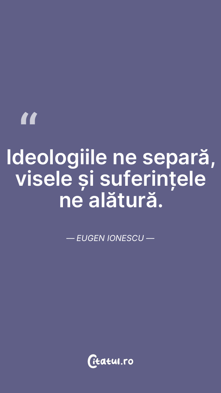 Ideologiile ne separă, visele și suferințele ne alătură. Eugen Ionescu