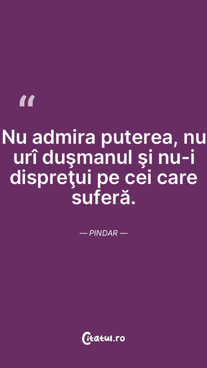Nu admira puterea, nu urî duşmanul şi nu-i dispreţui pe cei care suferă. Pindar