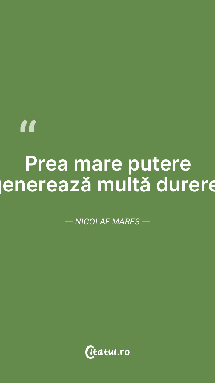 Prea mare putere generează multă durere. Nicolae Mares