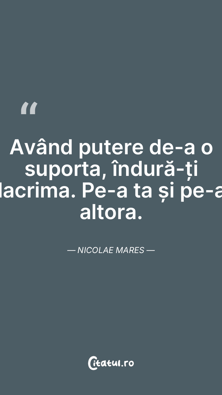 Având putere de-a o suporta, îndură-ți lacrima. Pe-a ta și pe-a altora. Nicolae Mares