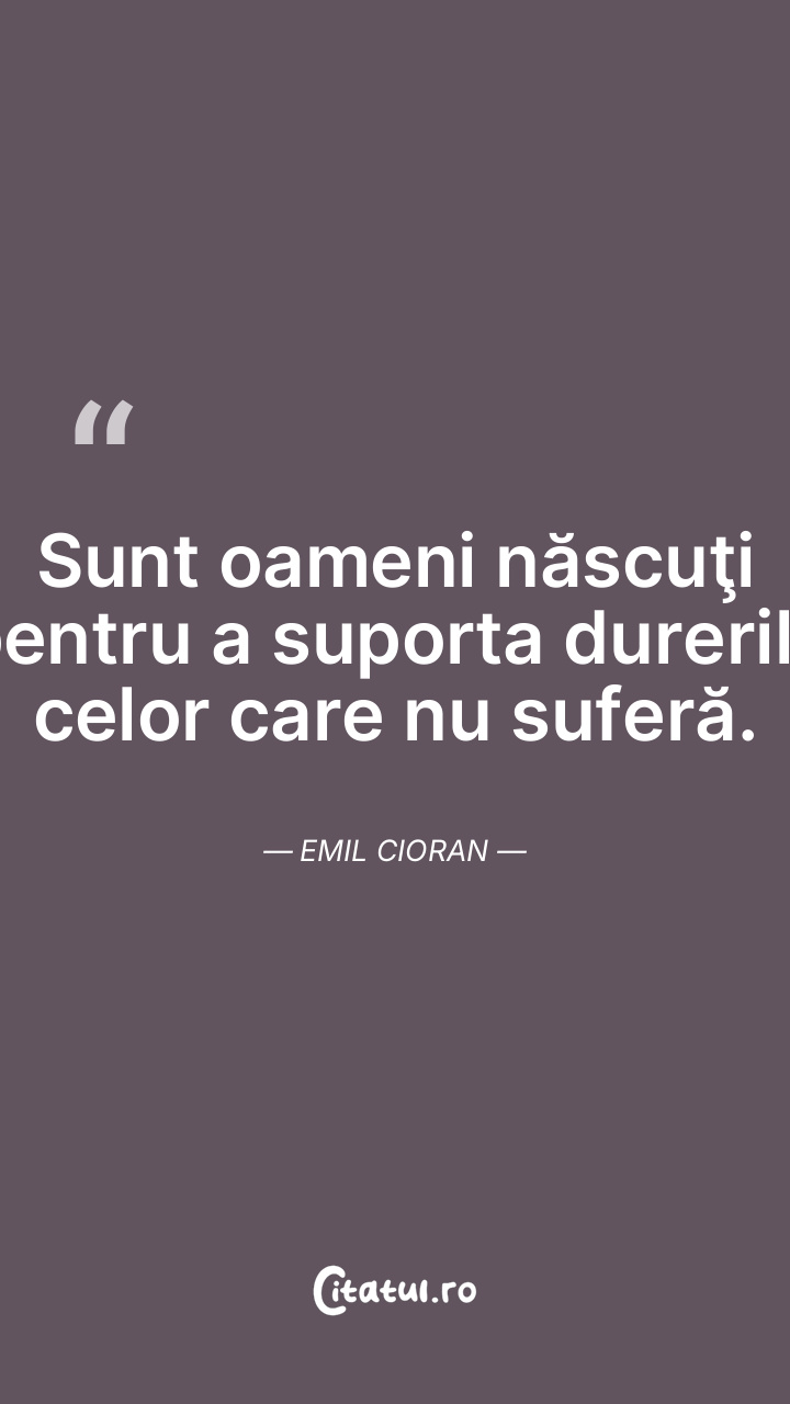 Sunt oameni născuţi pentru a suporta durerile celor care nu suferă. Emil Cioran