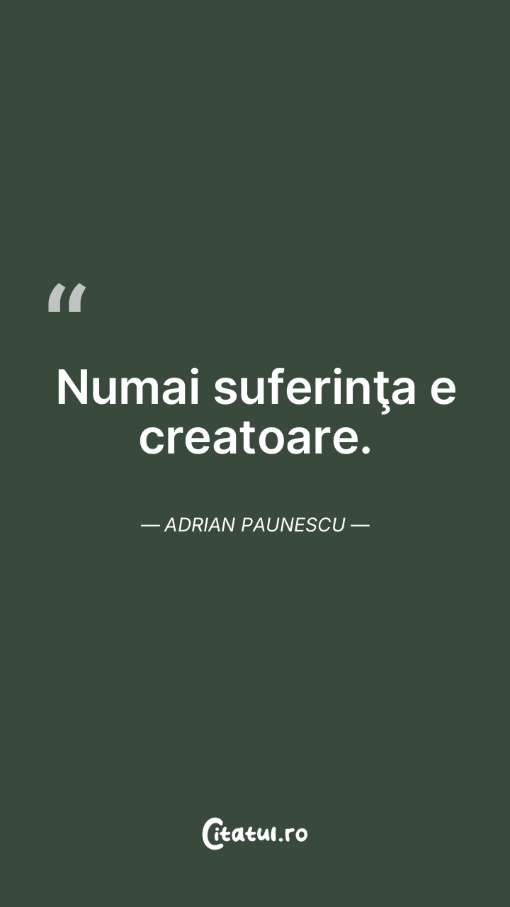 Numai suferinţa e creatoare. Adrian Paunescu ...