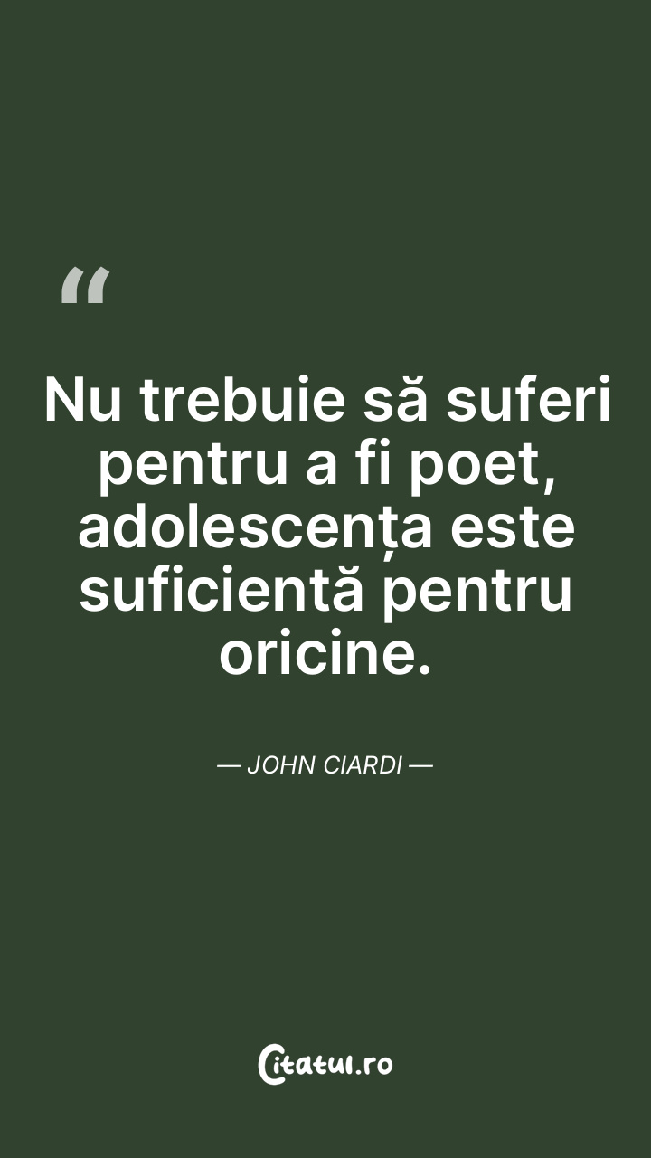 Nu trebuie să suferi pentru a fi poet, adolescența este suficientă pentru oricine. John Ciardi