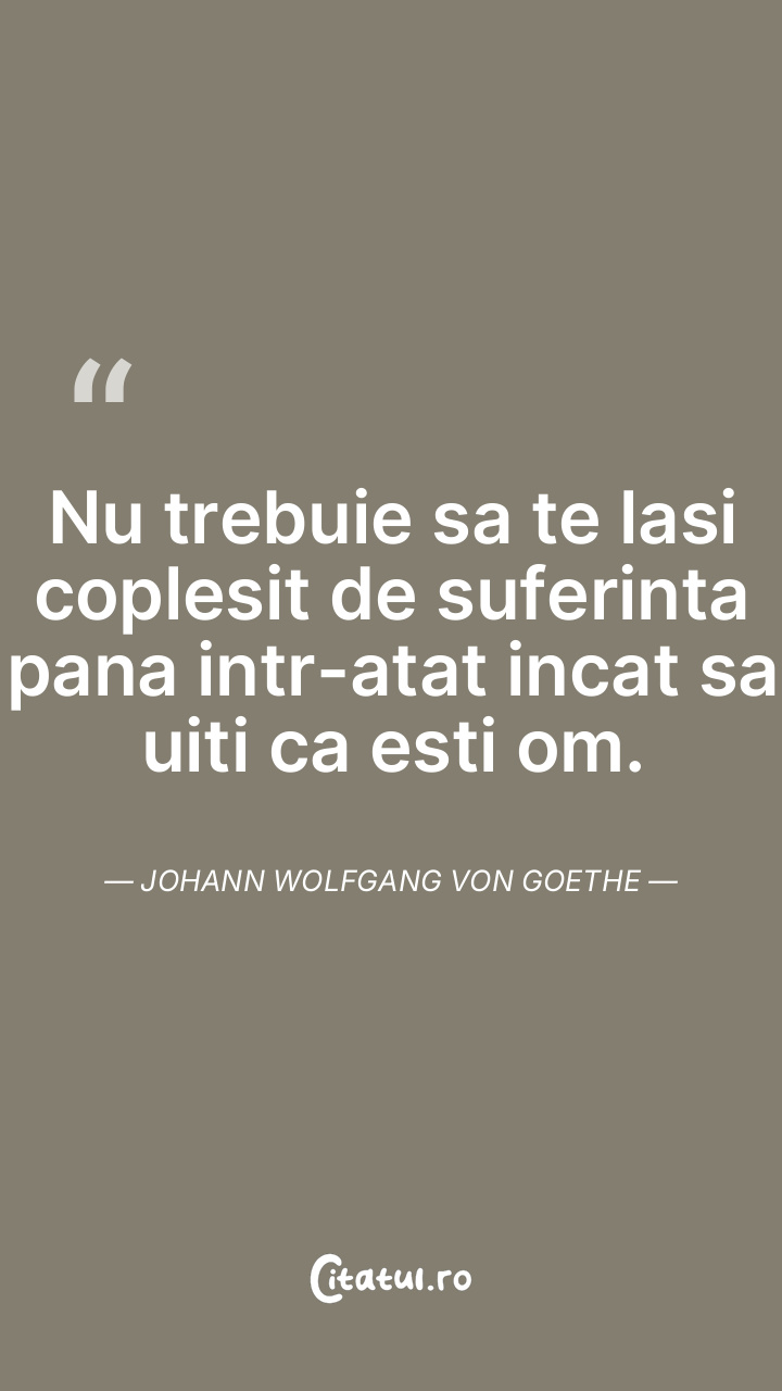 Nu trebuie sa te lasi coplesit de suferinta pana intr-atat incat sa uiti ca esti om. Johann Wolfgang von Goethe