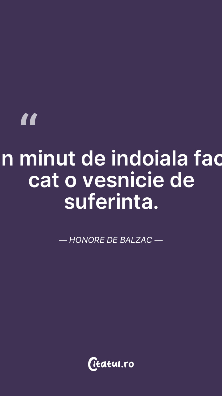 Un minut de indoiala face cat o vesnicie de suferinta. Honore de Balzac