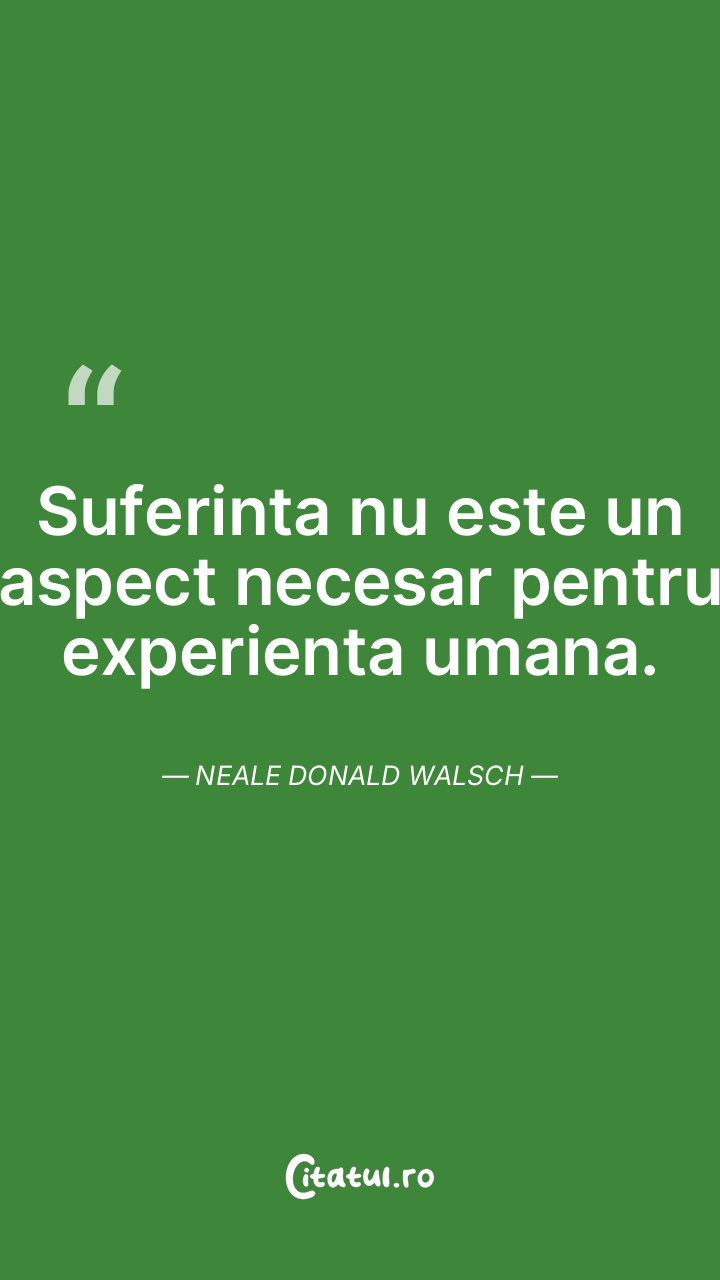 Suferinta nu este un aspect necesar pentru experienta umana. Neale Donald Walsch