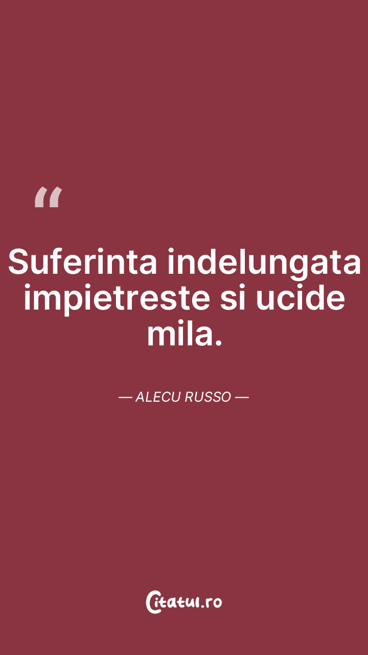Suferinta indelungata impietreste si ucide mila. Alecu Russo