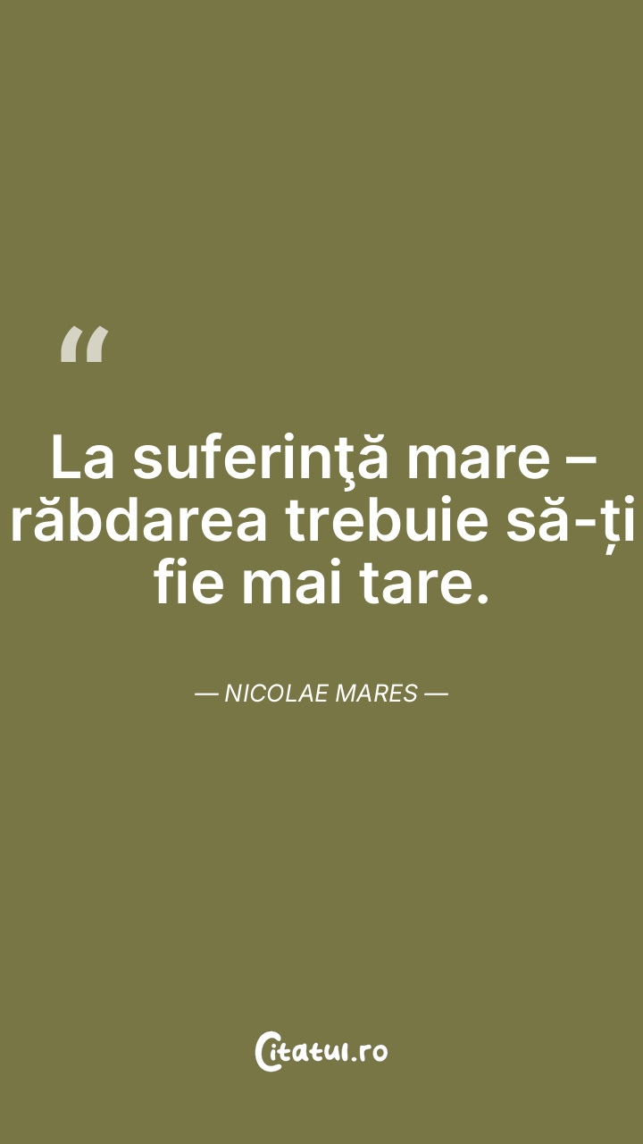 La suferinţă mare – răbdarea trebuie să-ți fie mai tare. Nicolae Mares