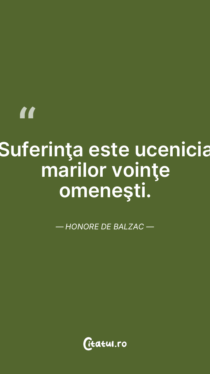 Suferinţa este ucenicia marilor voinţe omeneşti. Honore de Balzac